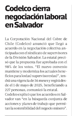 División Salvador llega a acuerdo con sus supervisores - (El Mercurio de Santiago)