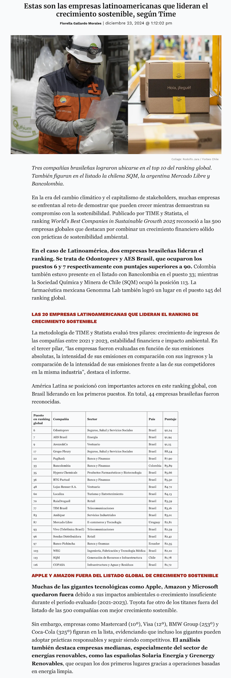 Estas son las empresas latinoamericanas que lideran el crecimiento sostenible, según Time - (Forbes)