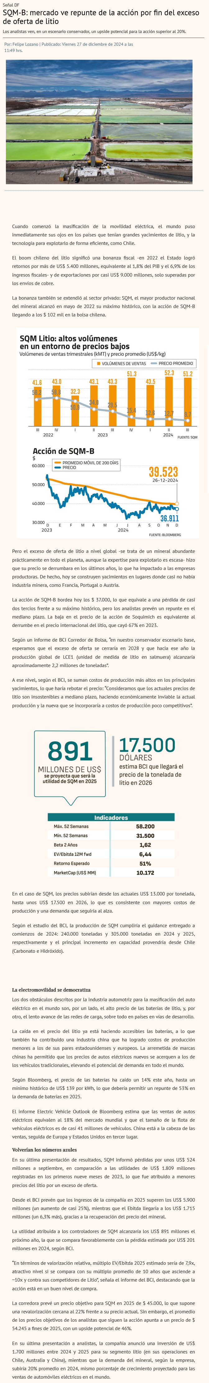 SQM – B: mercado ve repunte de la acción por fin del exceso de oferta de litio - (Diario Financiero)