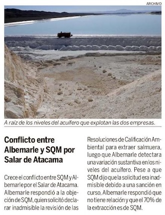 Conflicto entre SQM y Albemarle por revisión de permisos en el Salar - (El Mercurio de Antofagasta)