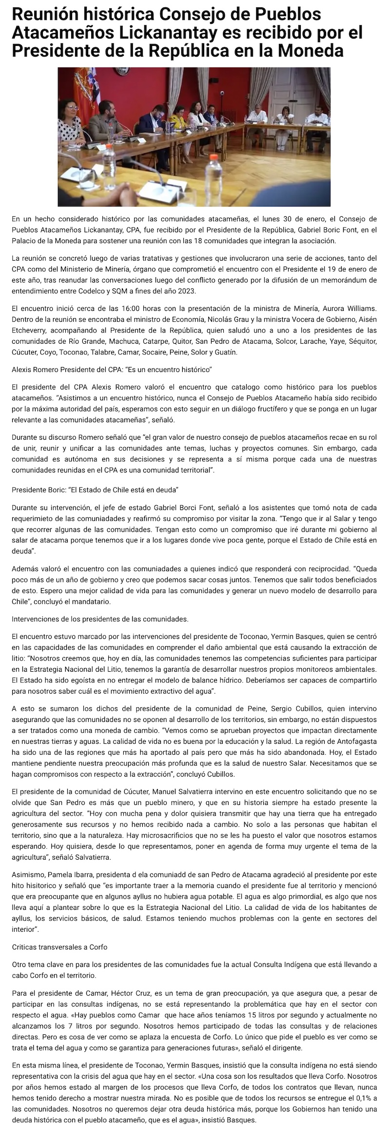 Reunión histórica Consejo de Pueblos Atacameños Lickanantay es recibido por el Presidente de la República en la Moneda - (portalVallenarDigital.cl)