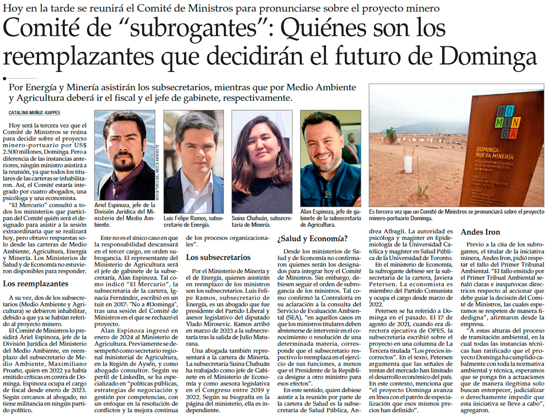 Comité de Ministros definiría futuro de Dominga durante esta jornada - (El Día)