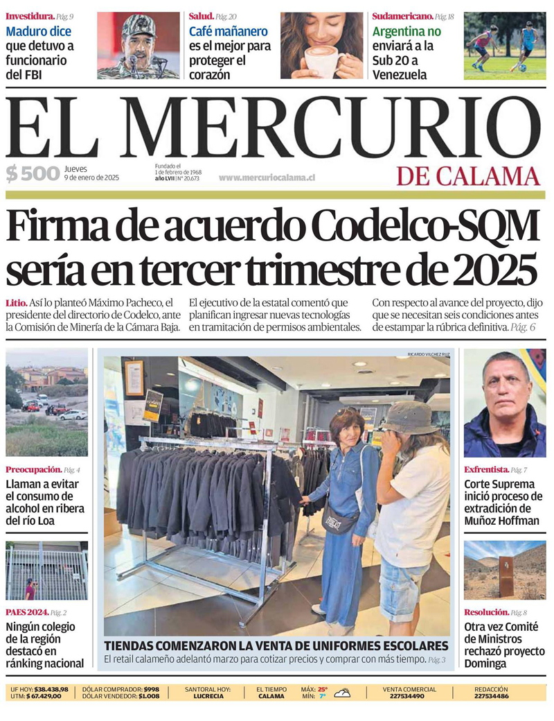 Firma definitiva del acuerdo Codelco-SQM sería durante el tercer trimestre de este año - (El Mercurio de Antofagasta)