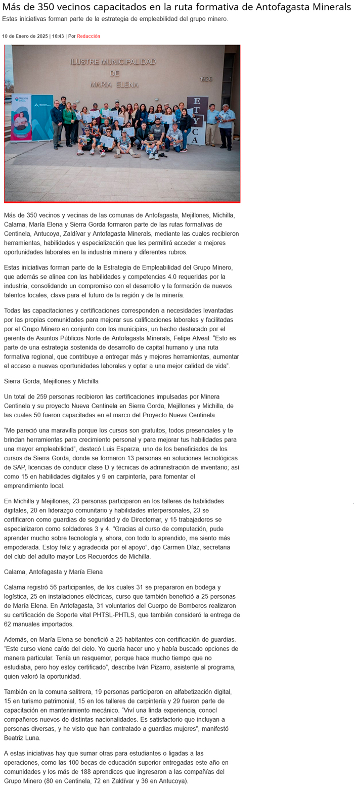 La ruta formativa de Antofagasta Minerals capacitó a más de 350 personas en comunidades de la Región durante 2024 - (portalinnova.cl)