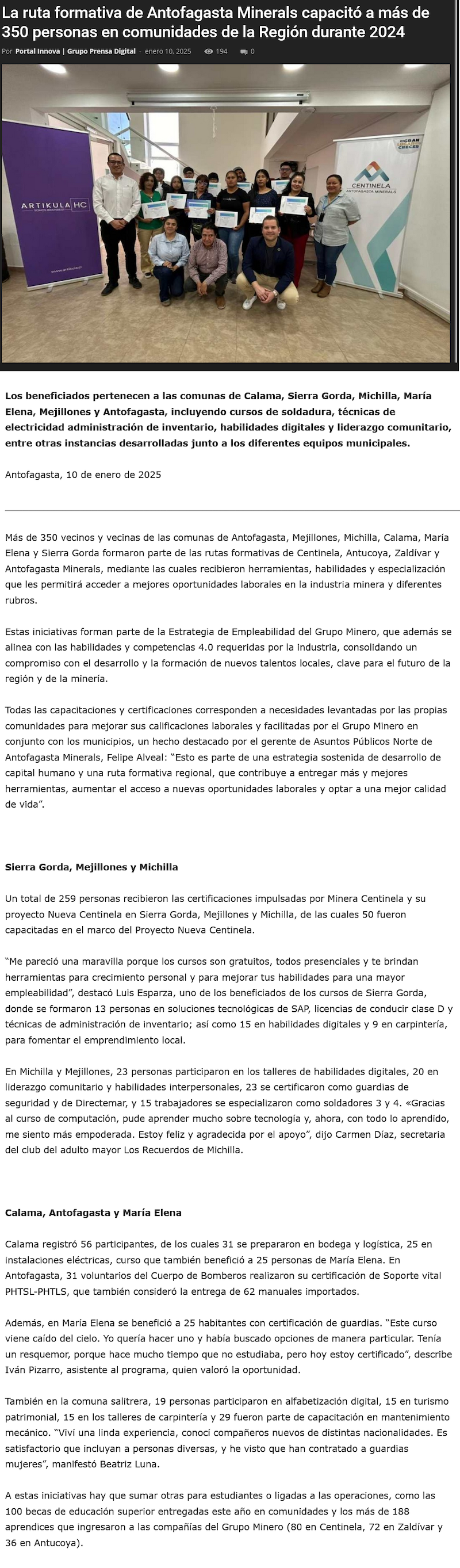 Ruta formativa de Antofagasta Minerals capacita a más de 350 personas en comunidades de la Región de Antofagasta durante 2024 - (mch.cl)
