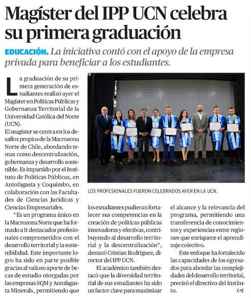 Magíster del IPP UCN celebra su primera graduación - (El Mercurio de Calama)