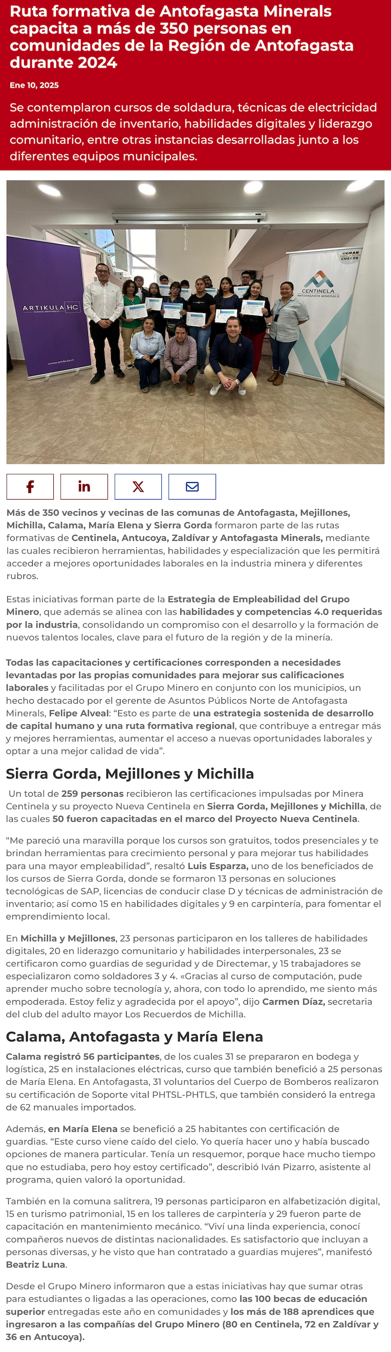 La ruta formativa de Antofagasta Minerals capacitó a más de 350 personas en comunidades de la Región durante 2024 - (portalinnova.cl)