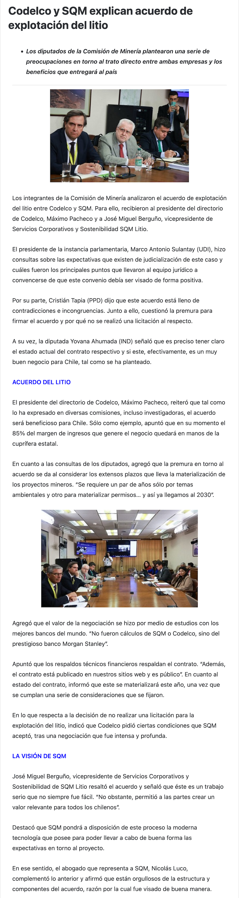 Ante reparos, Codelco y SQM defienden su asociación por el litio por ser "beneficioso para Chile" - (biobiochile online)