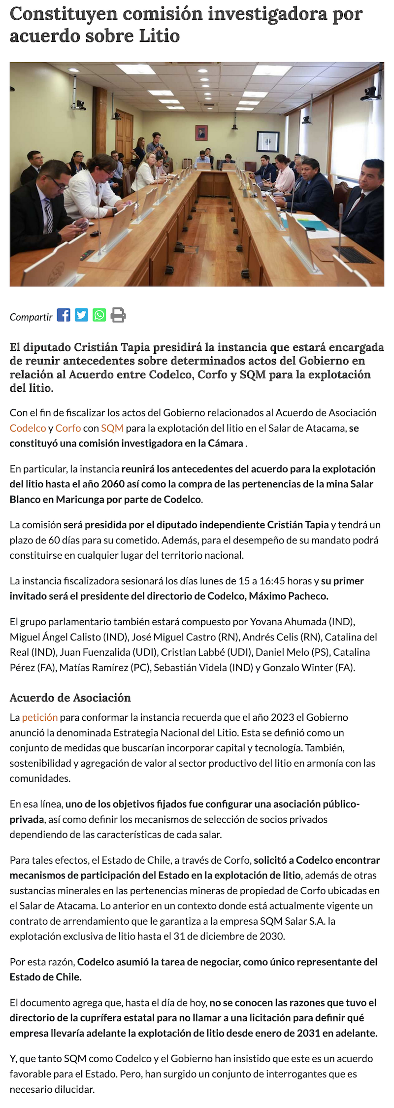 Se constituye Comisión Investigadora por acuerdo sobre litio - (mch.cl)