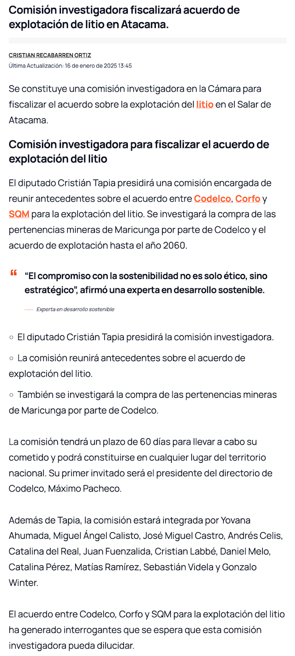 Se constituye Comisión Investigadora por acuerdo sobre litio - (mch.cl)