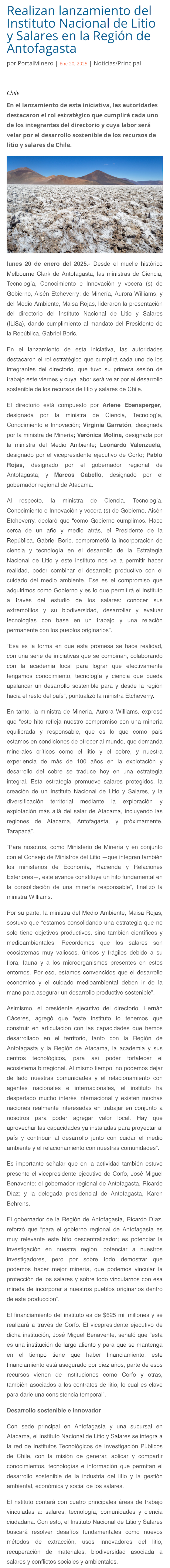 Inauguran Instituto Nacional de Litio: sus cinco ejes de trabajo y qué investigará - (biobiochile online)