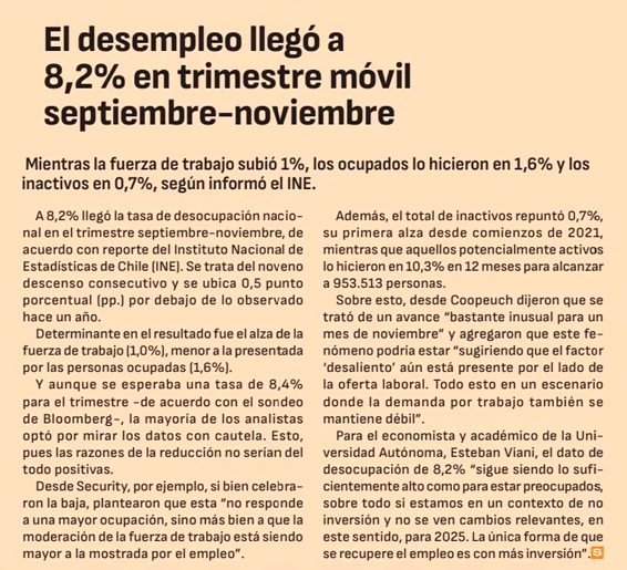 Desempleo en Chile baja a 8,1% en el último trimestre de 2024, mientras Tarapacá muestra fuerte alza en la desocupación - (El Longino de Iquique)