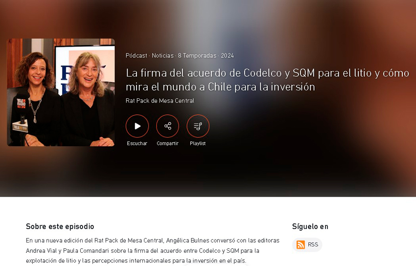 https://tele13radio.cl/show/rat-pack-de-mesa-central/episode/la-firma-del-acuerdo-de-codelco-y-sqm-para-el-litio-y-como-mira-el-mundo-a-chile-para-la-inversion - T13 Radio - Miércoles, 5 de Febrero de 2025