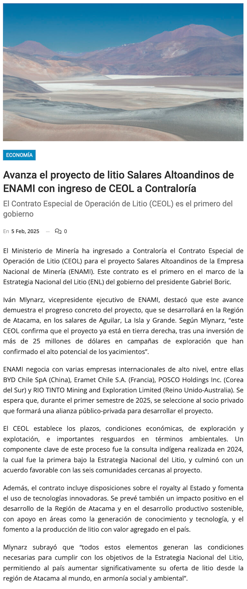 Avanza el proyecto de litio Salares Altoandinos de ENAMI con ingreso de CEOL a Contraloría - (tierramarillano.cl)