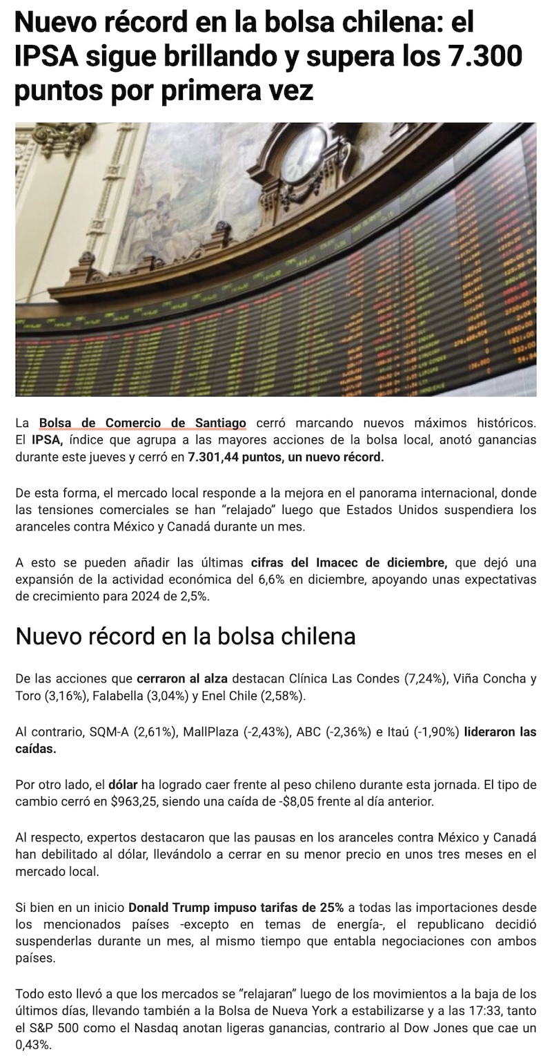 Nuevo récord en la bolsa chilena: el IPSA sigue brillando y supera los 7.300 puntos por primera vez - (canalsurpatagonia.cl)