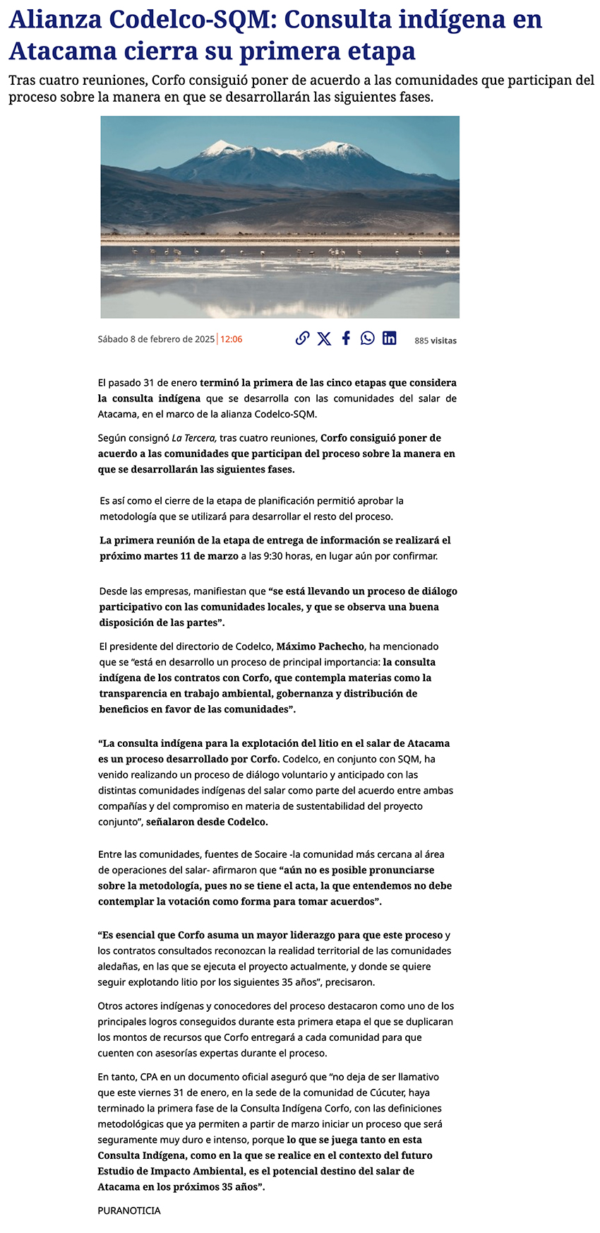 Alianza Codelco-SQM: Consulta indígena en Atacama cierra su primera etapa - (puranoticia.cl)