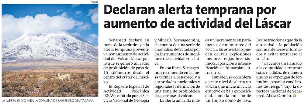 Urgente: Alerta preventiva en comuna San Pedro Atacama por actividad Volcán Lascar - (elamerica)