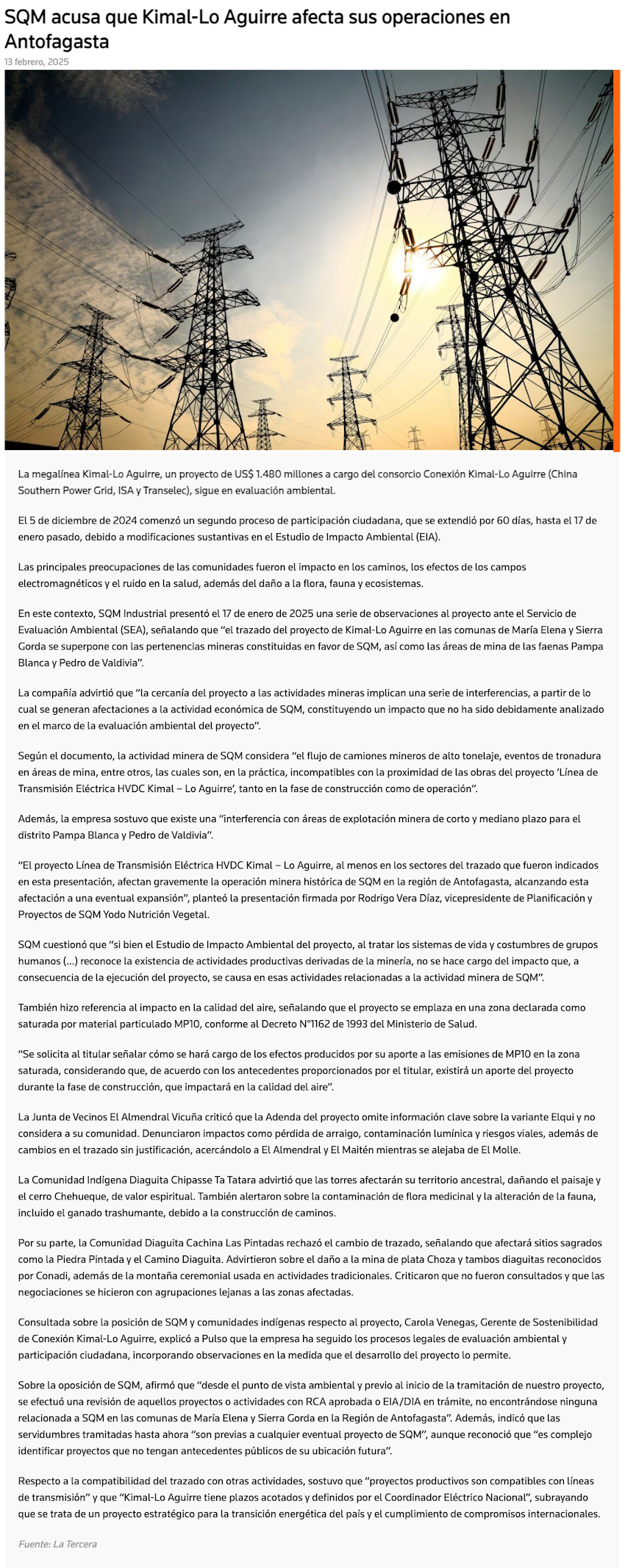 Proyecto Kimal-Lo Aguirre: controversia por impacto en SQM y comunidades indígenas - (redimin)