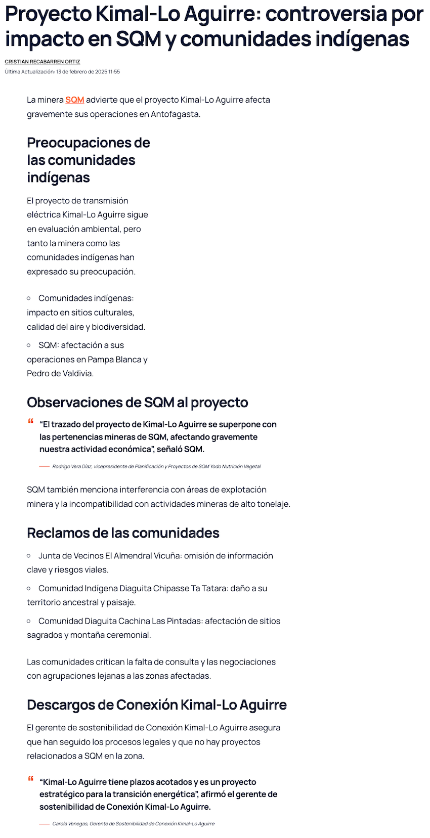 SQM acusa que Kimal-Lo Aguirre afecta sus operaciones en Antofagasta - (nuevaminería online)