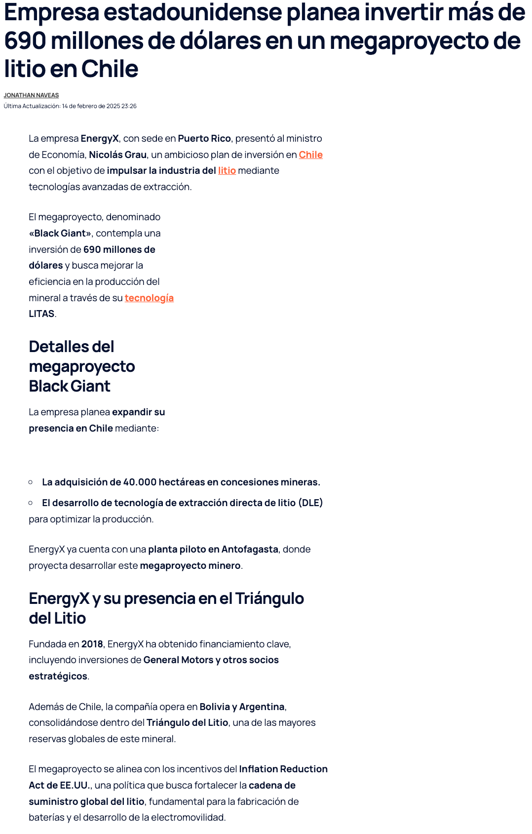 El megaproyecto de litio que quiere financiar una empresa estadounidense en Chile: cuesta más de 690 millones de dólares - (encancha.cl)