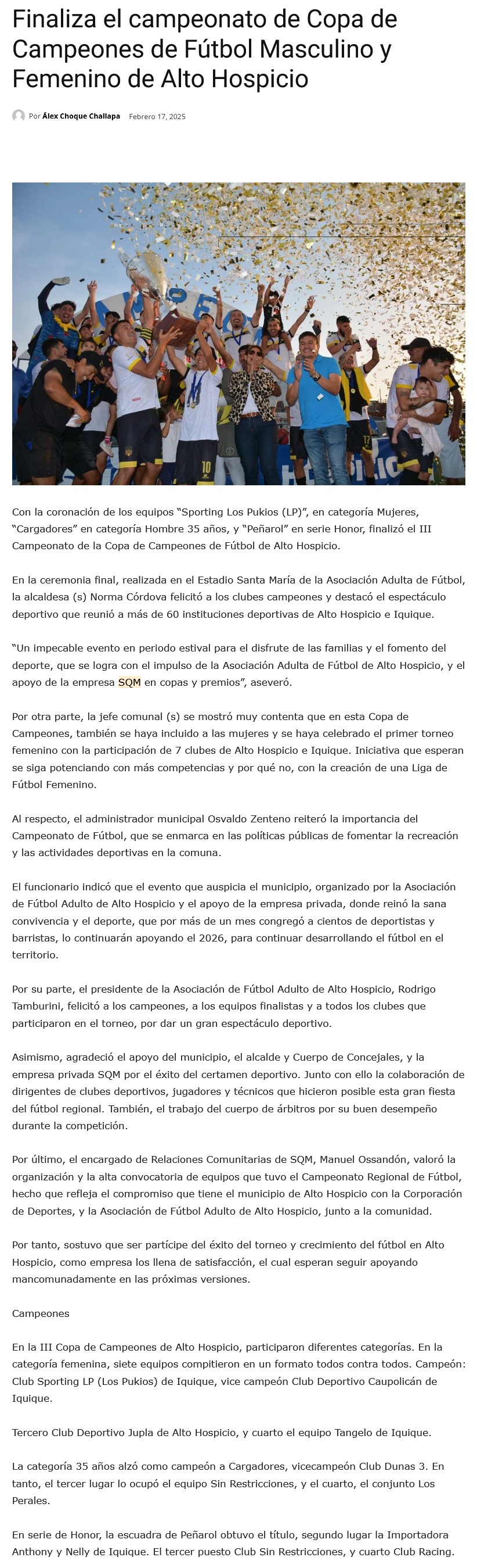 Brillante cierre de III Campeonato de Copa de Campeones de Fútbol Masculino y Femenino de Alto Hospicio - (infocomunicacioneschile.cl)