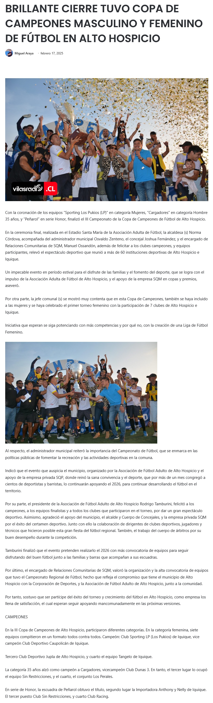 Brillante cierre de III Campeonato de Copa de Campeones de Fútbol Masculino y Femenino de Alto Hospicio - (infocomunicacioneschile.cl)