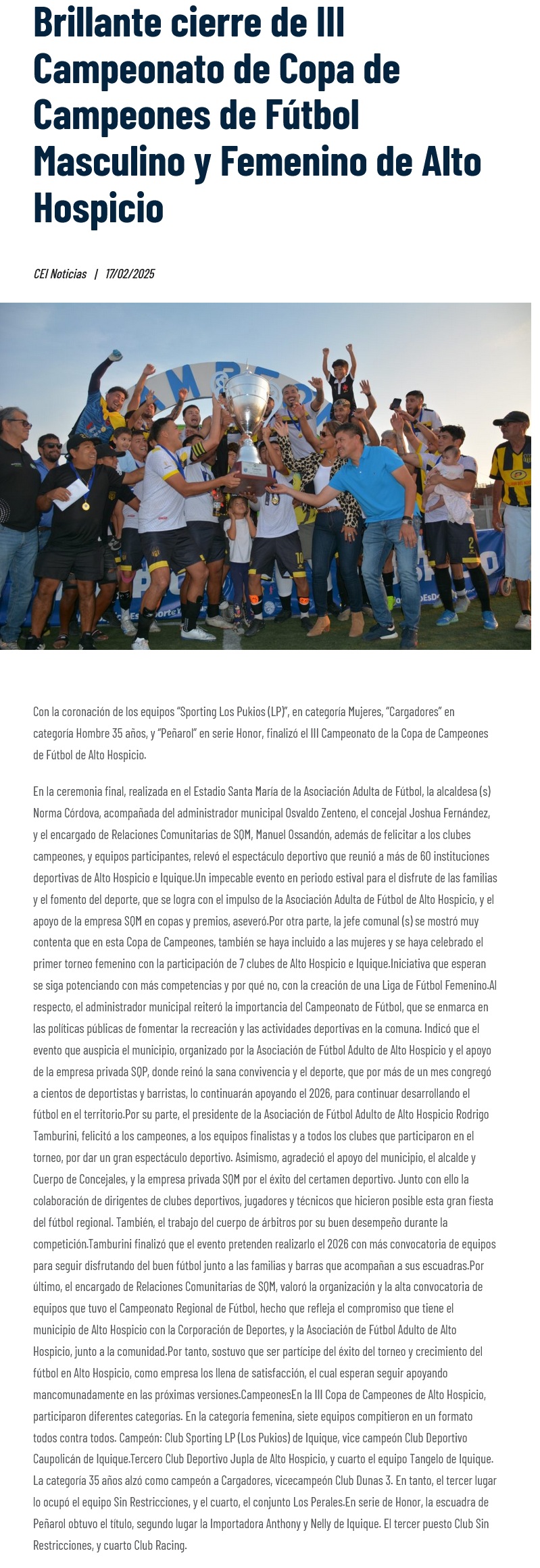 Brillante cierre de III Campeonato de Copa de Campeones de Fútbol Masculino y Femenino de Alto Hospicio - (infocomunicacioneschile.cl)