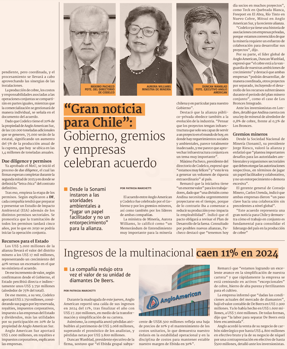 “Cambio de paradigma”: Especialistas valoran el giro productivo tras la alianza Codelco-Anglo - (El Mercurio de Santiago)