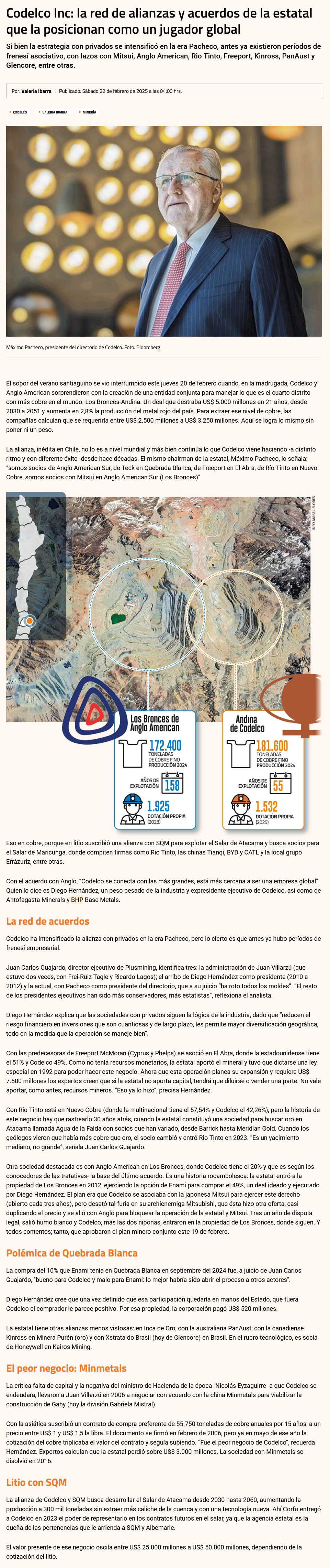 Codelco Inc: la red de alianzas y acuerdos de la estatal que la posicionan como un jugador global - (Diario Financiero)