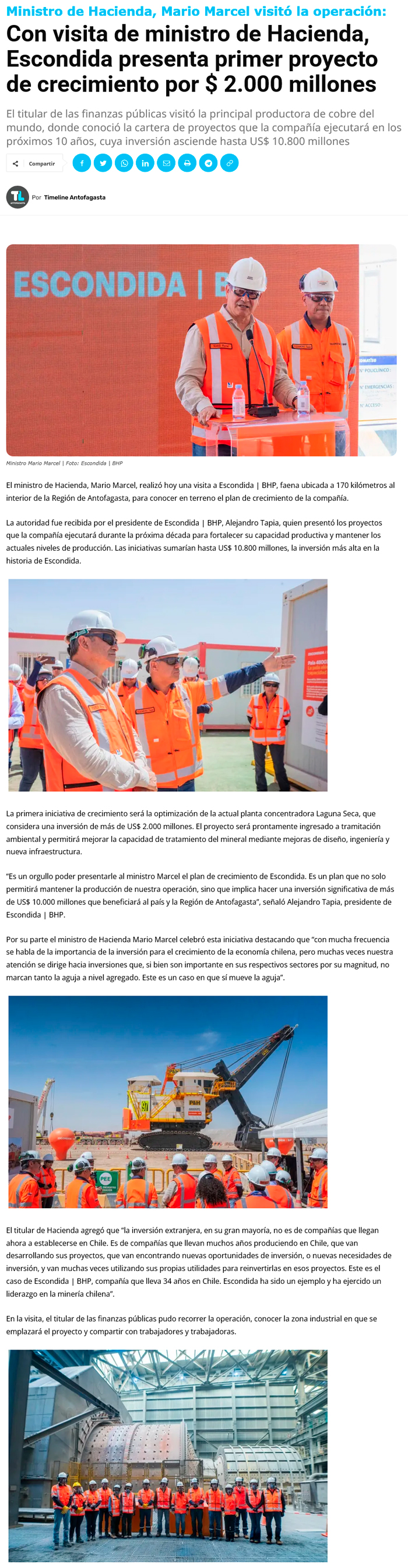 Ministro Marcel e inversión histórica en Minera Escondida: “Sí mueve la aguja” en el crecimiento - (Diario Financiero)