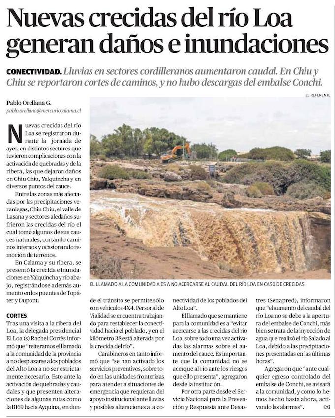 El norte bajo monitoreo ante amenaza de desborde: Llaman a evacuar ribera de río Loa - (eldesconcierto)