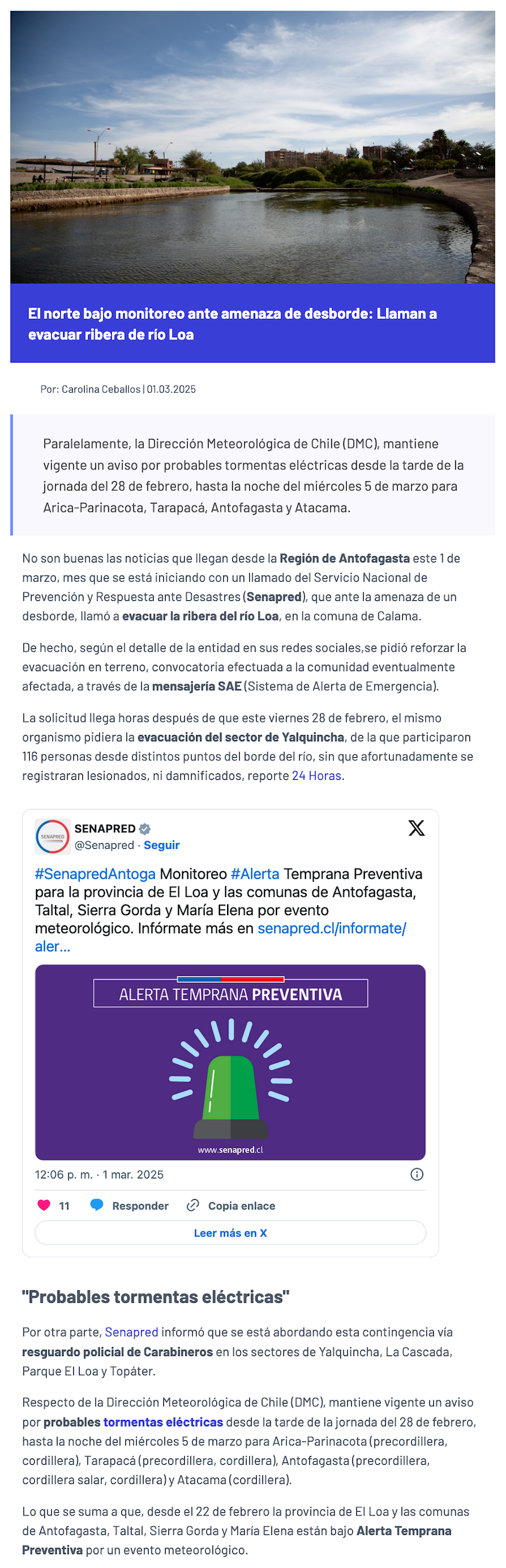 Nuevas crecidas del río Loa generan daños e inundaciones - (El Mercurio de Calama)