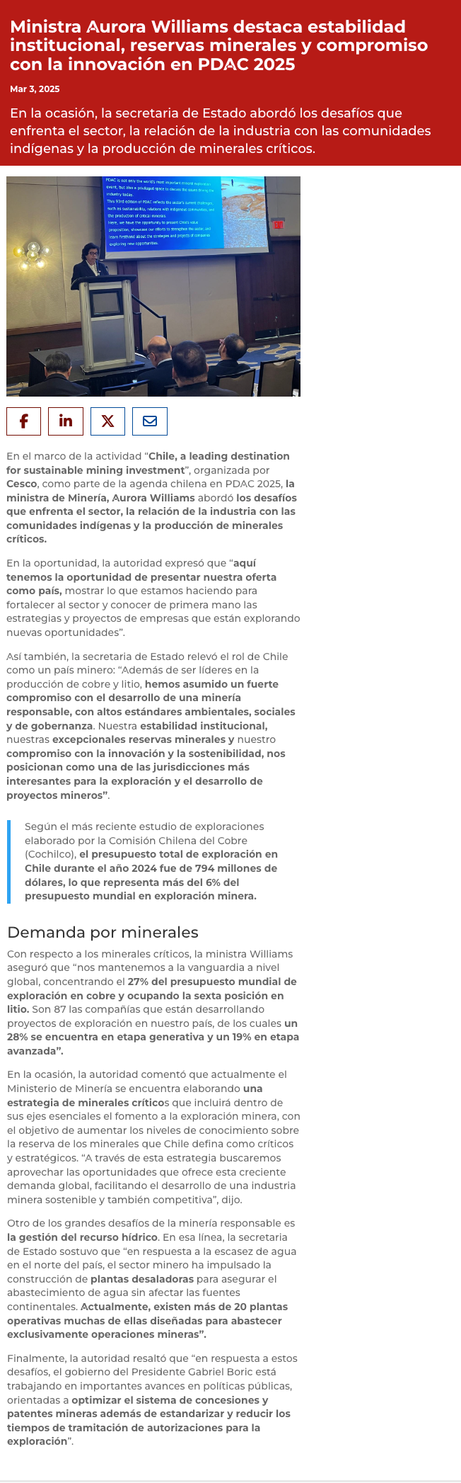 PDAC 2025: Compañías productoras detallan sus avances hacia una minería sostenible - (mch.cl)