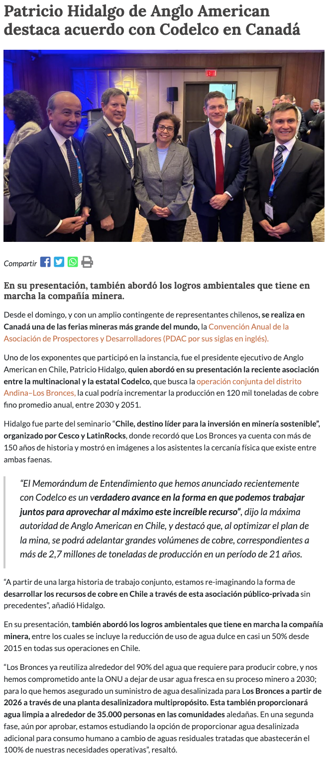 Corfo y Red Eureka impulsan la innovación colaborativa de empresas chilenas en la principal feria minera de Canadá - (madero.cl)
