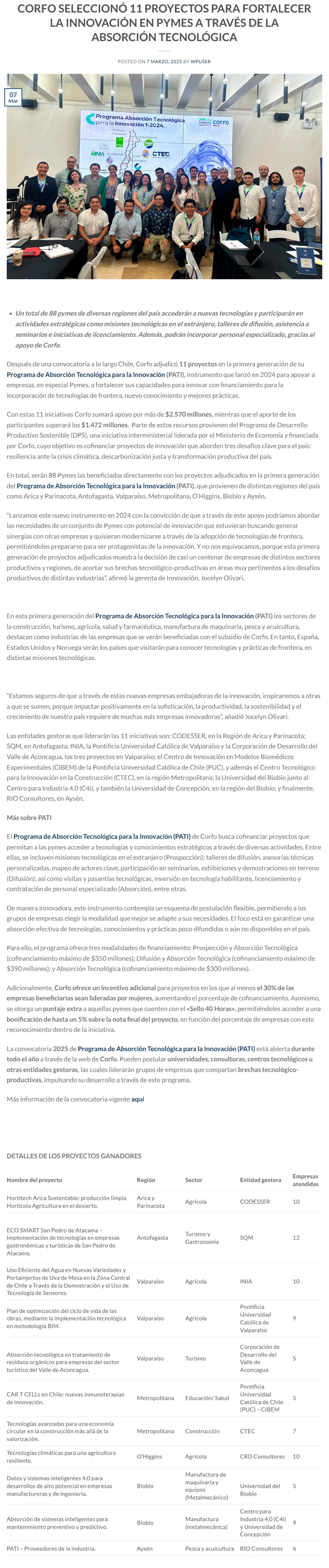 Corfo seleccionó 11 proyectos para fortalecer la innovación en pymes a través de la absorción tecnológica - (regionesnoticias.cl)