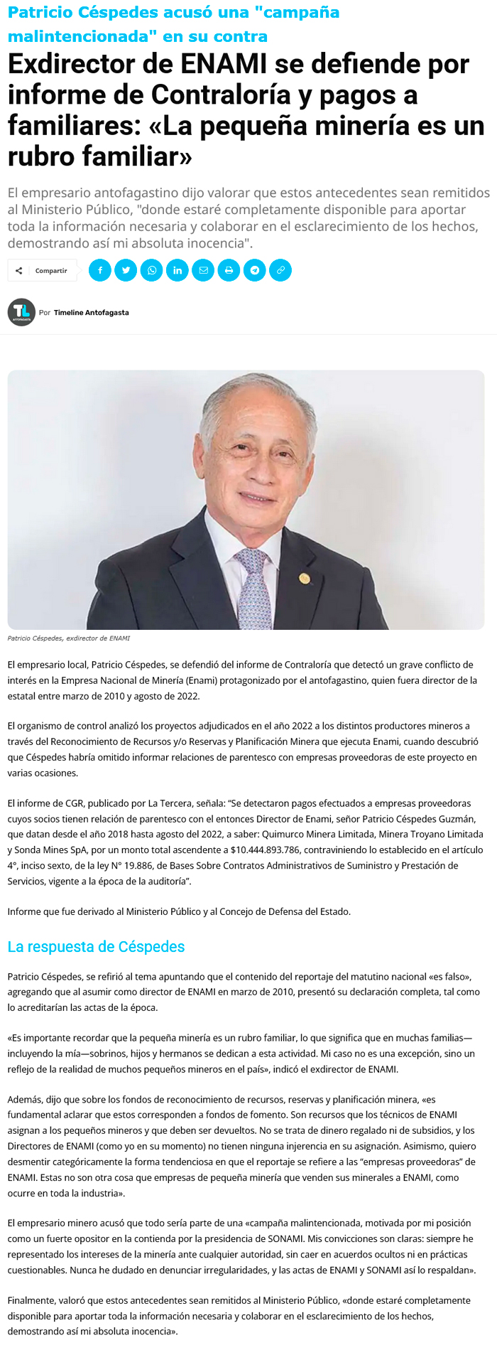 Contraloría detecta millonarios pagos de Enami a empresas de familiares de exdirector - (El Mercurio de Antofagasta)