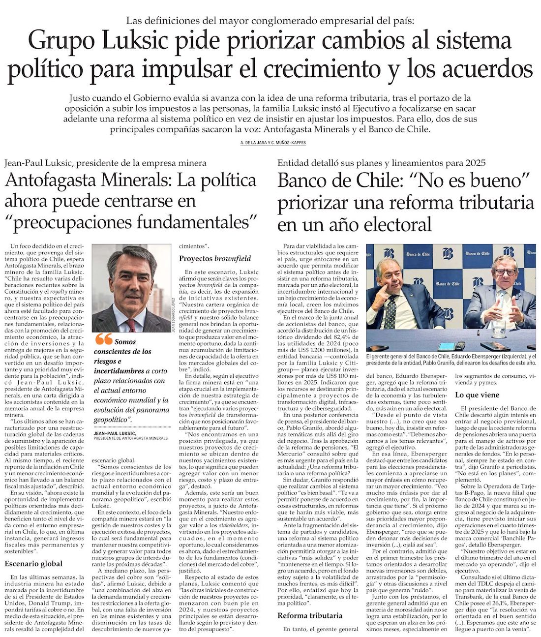 Jean-Paul Luksic: “Existe la oportunidad de aplicar políticas orientadas más hacia el crecimiento” - (Diario Financiero)
