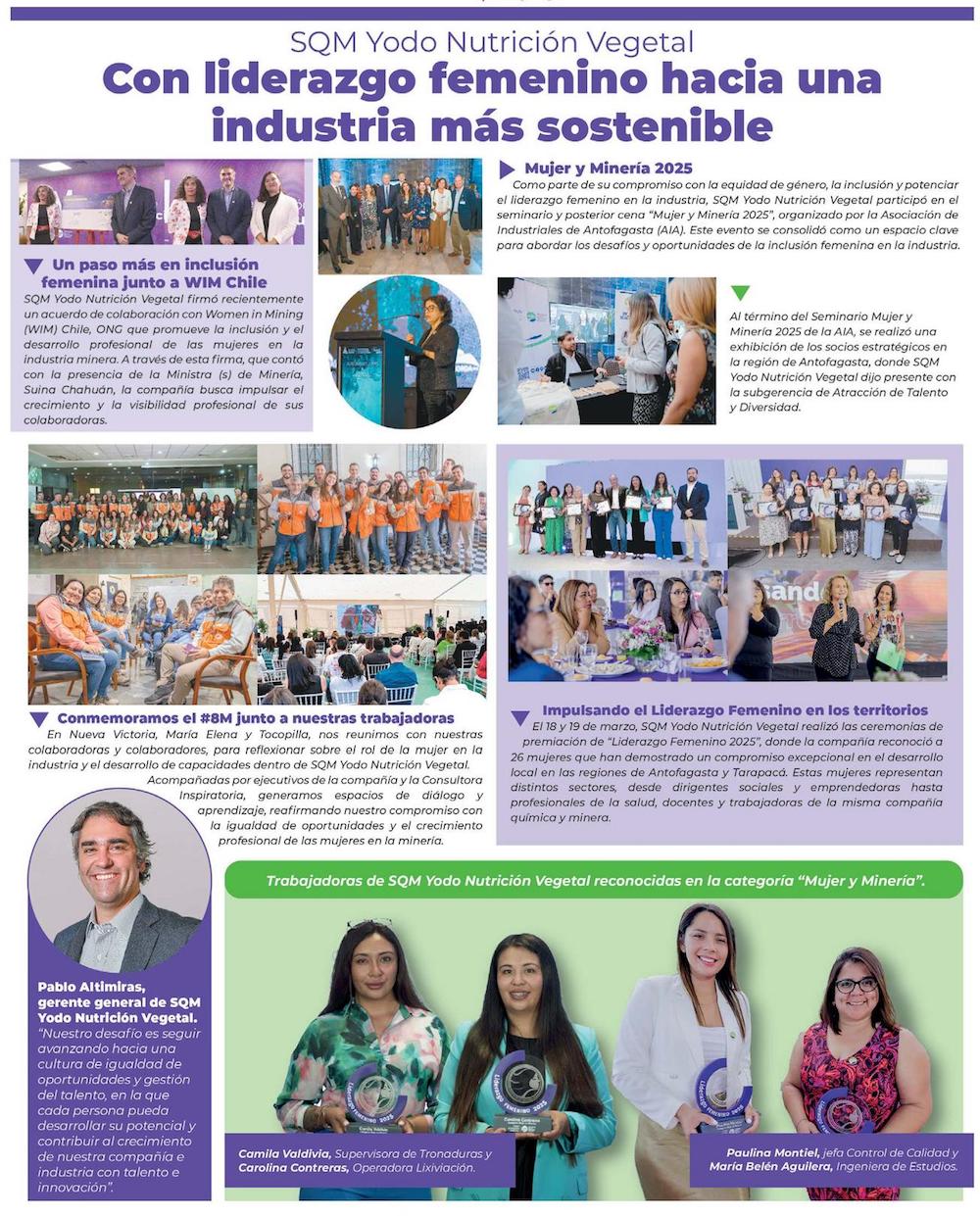 SQM Yodo Nutrición Vegetal impulsa liderazgo femenino en minería y reconoce a mujeres que inspiran - (reporteminero)