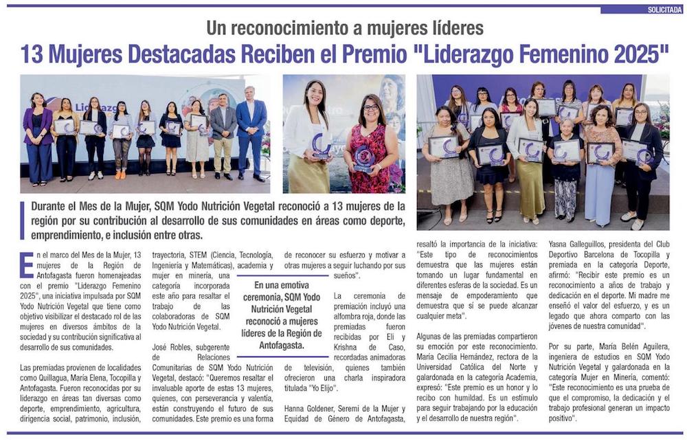 SQM Yodo Nutrición Vegetal impulsa liderazgo femenino en minería y reconoce a mujeres que inspiran - (reporteminero)