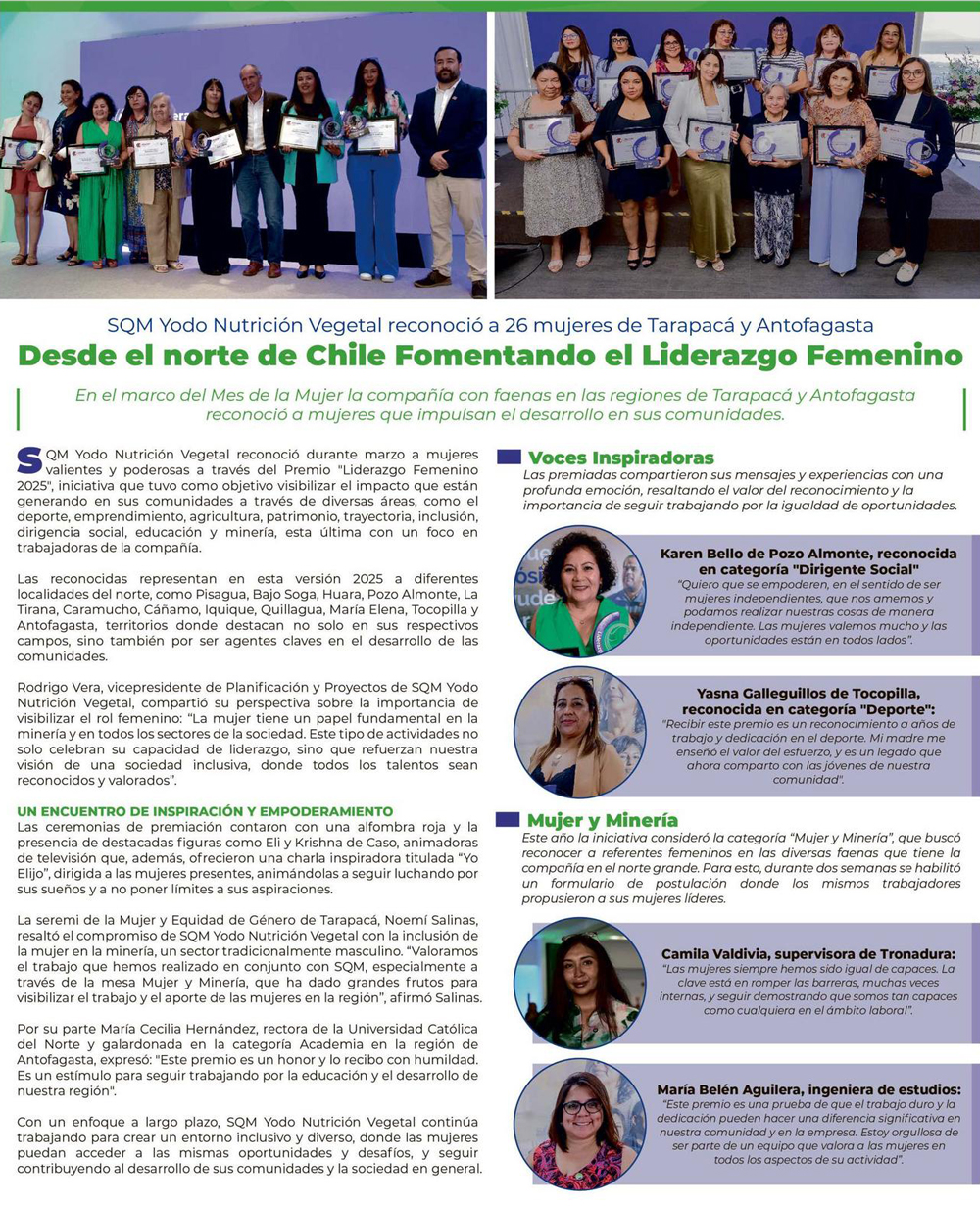 SQM Yodo Nutrición Vegetal impulsa liderazgo femenino en minería y reconoce a mujeres que inspiran - (reporteminero)