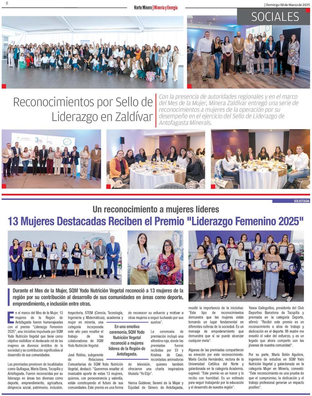 SQM Yodo Nutrición Vegetal impulsa liderazgo femenino en minería y reconoce a mujeres que inspiran - (reporteminero)
