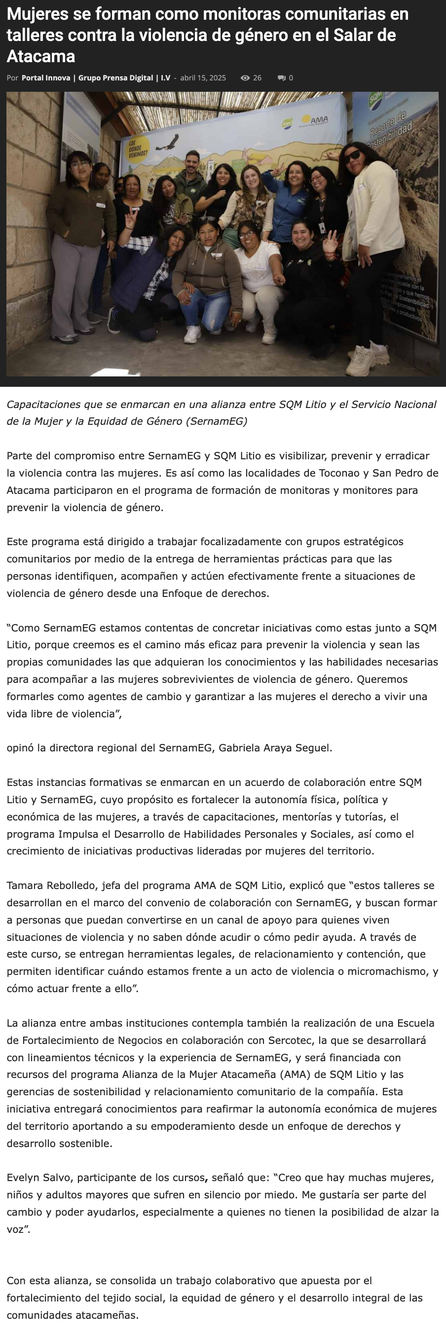 Mujeres se forman como monitoras comunitarias en talleres contra la violencia de género en el Salar de Atacama - (regionesnoticias.cl)