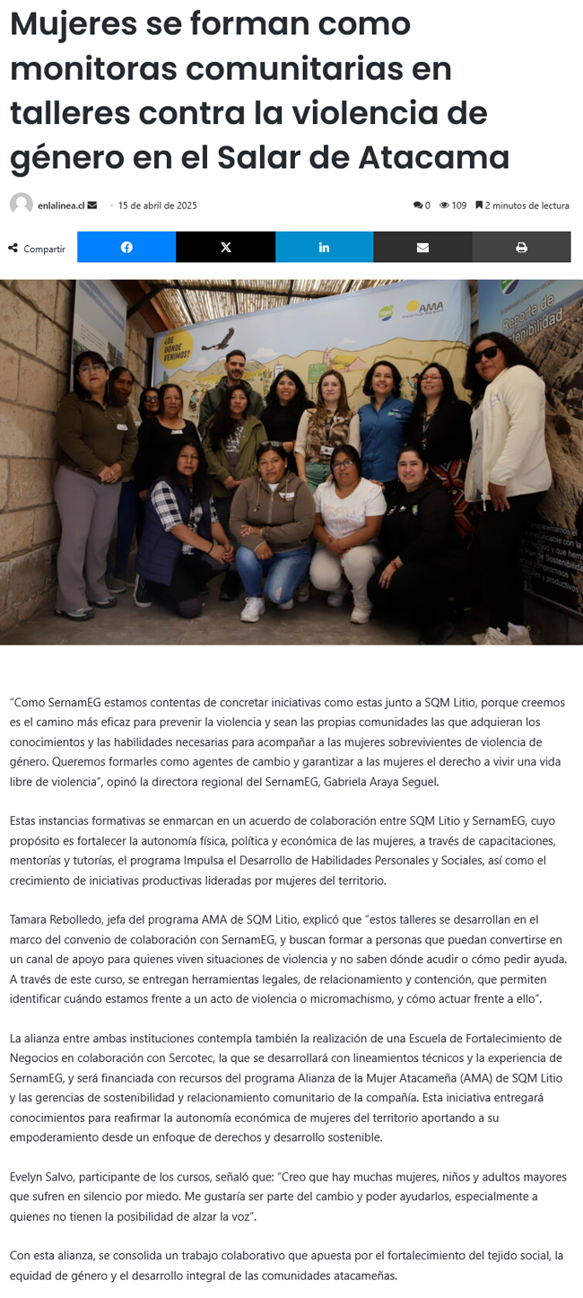 Mujeres se forman como monitoras comunitarias en talleres contra la violencia de género en el Salar de Atacama - (portalinnova.cl)