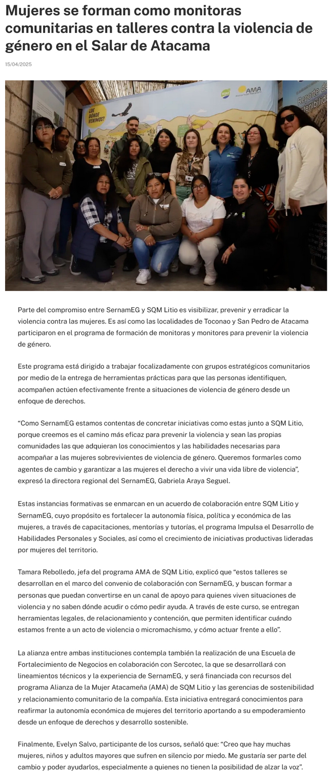 Mujeres se forman como monitoras comunitarias en talleres contra la violencia de género en el Salar de Atacama - (portalinnova.cl)