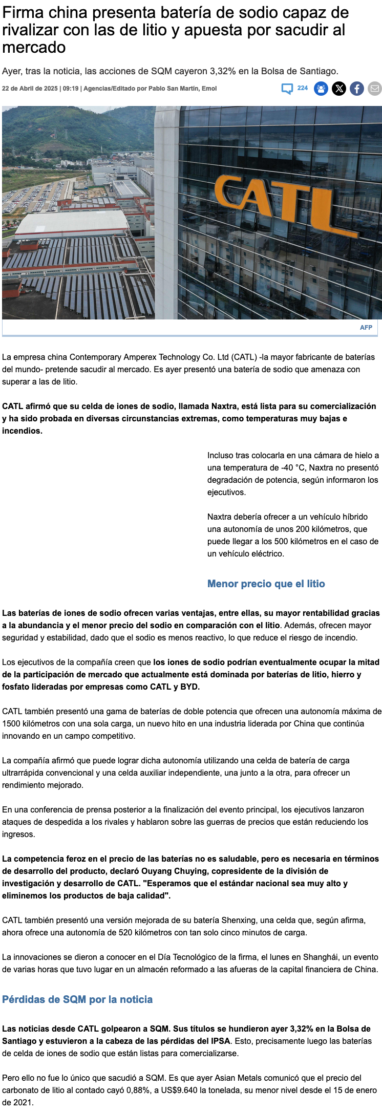 Firma china presenta batería de sodio capaz de rivalizar con las de litio y apuesta por sacudir al mercado - (portalnet.cl)