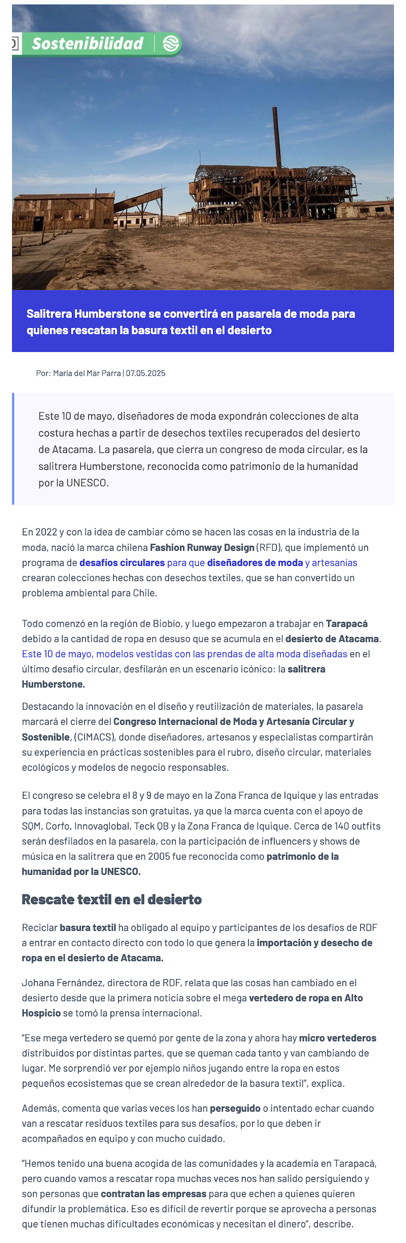 Moda Circular y Sostenible en Tarapacá: Comunidad podrá disfrutar del congreso "CIMACS" y de la tercera versión de la pasarela "RFD" - (vilasradio.cl)