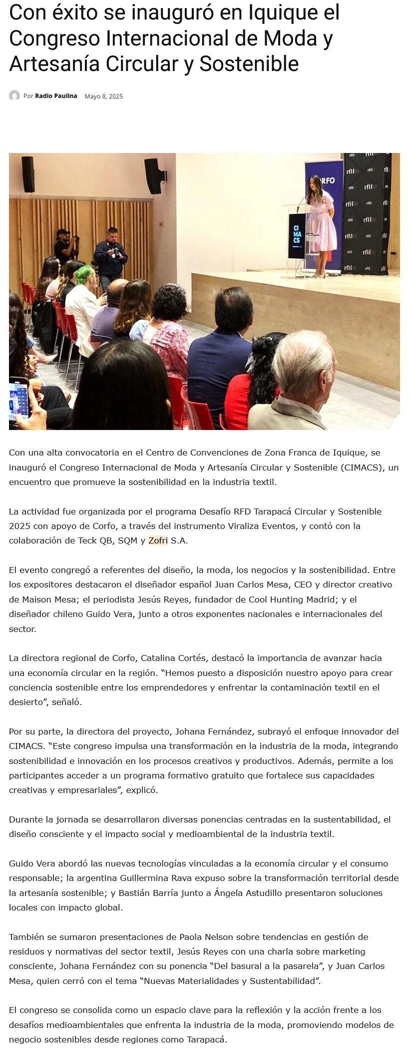 Congreso Internacional Impulsa la Moda Sostenible en Tarapacá - (lamegafm.cl)