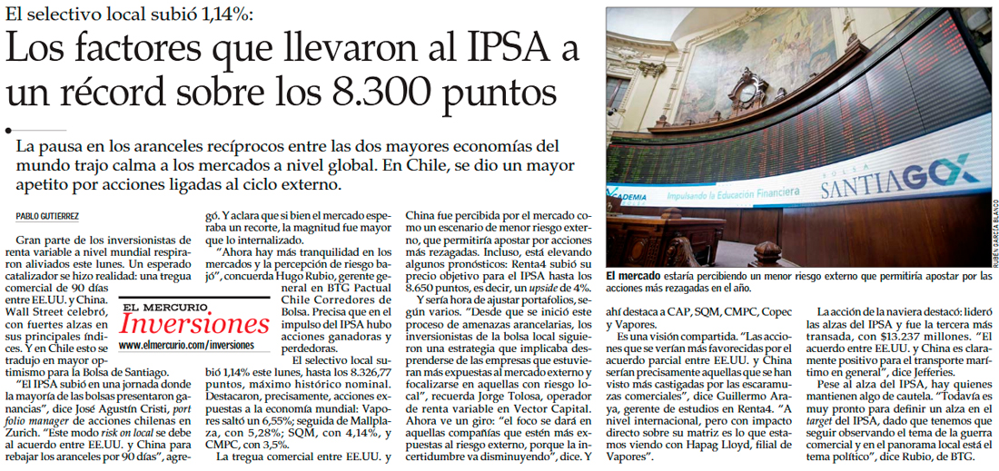 IPSA cierra con fuerte alza sobre históricos 8.300 puntos tras la desescalada de la guerra comercial entre EEUU y China - (DF Online)