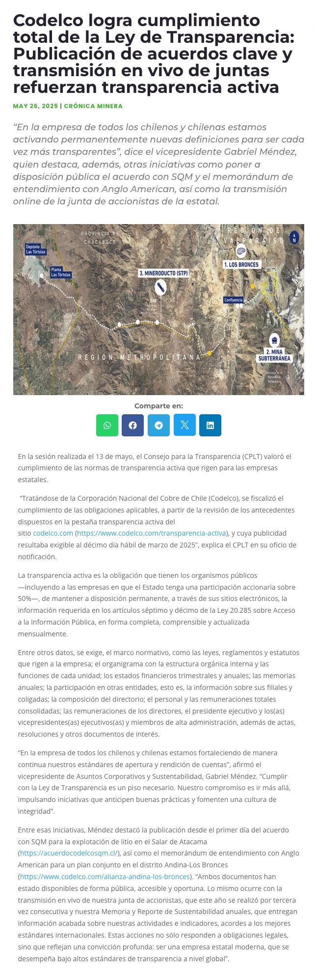 Codelco cumple con el 100% de la Ley de Transparencia - (reporteminero)
