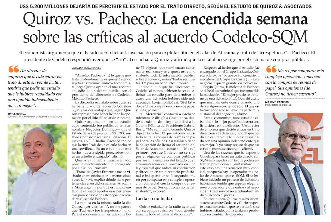"Irrespetuoso": Quiroz responde a Pacheco tras críticas a estudio que cuestiona acuerdo Codelco-SQM - (emol)